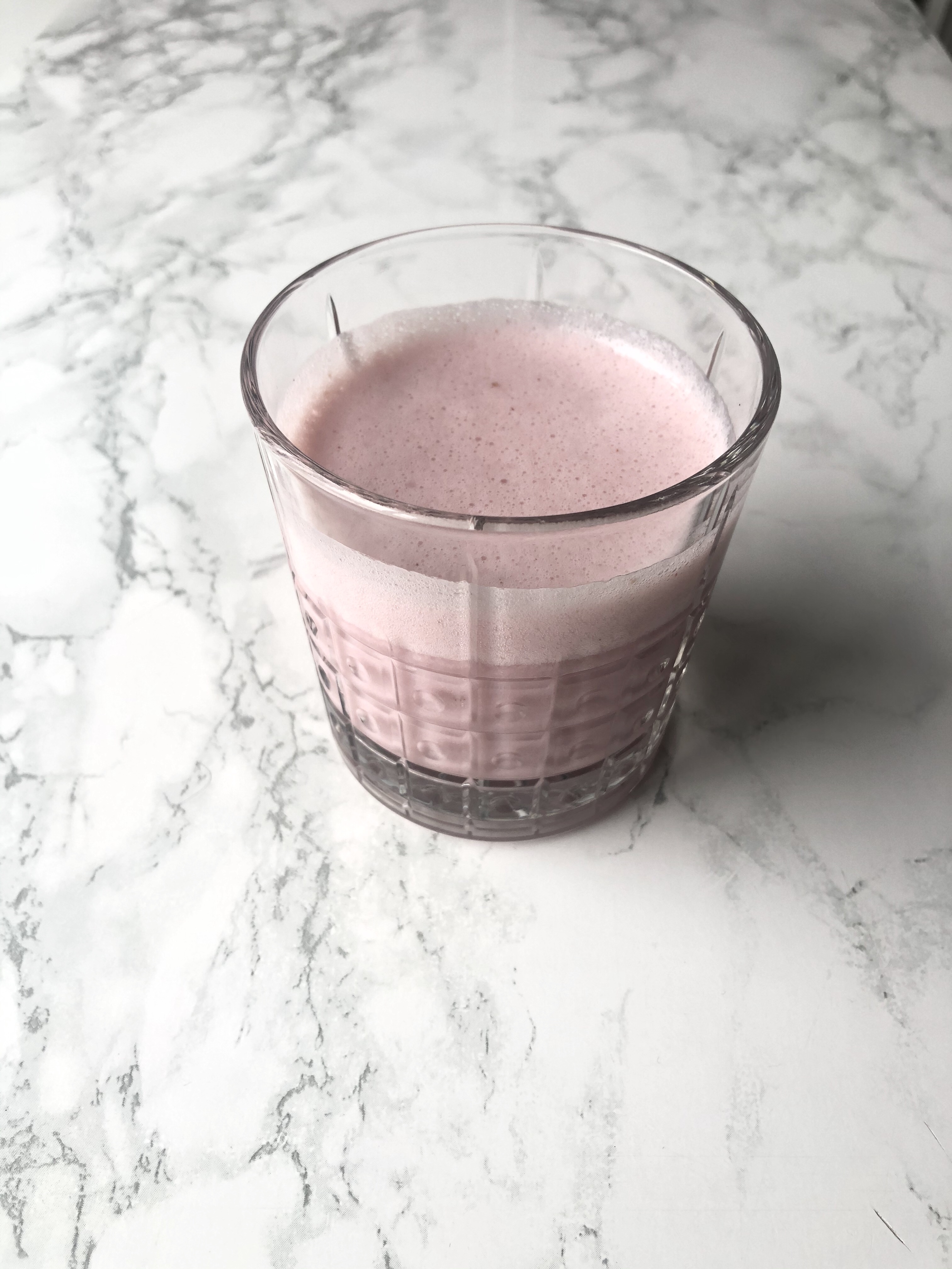 Organic soya milk (sun in whatever milk you prefer) and some sweet strawberries. It was super delicious. If yours comes out tasting a little too tart for your liking chuck in a banana or a teaspoon of honey (honey is a superfood, I’ll write a post about it ASAP).